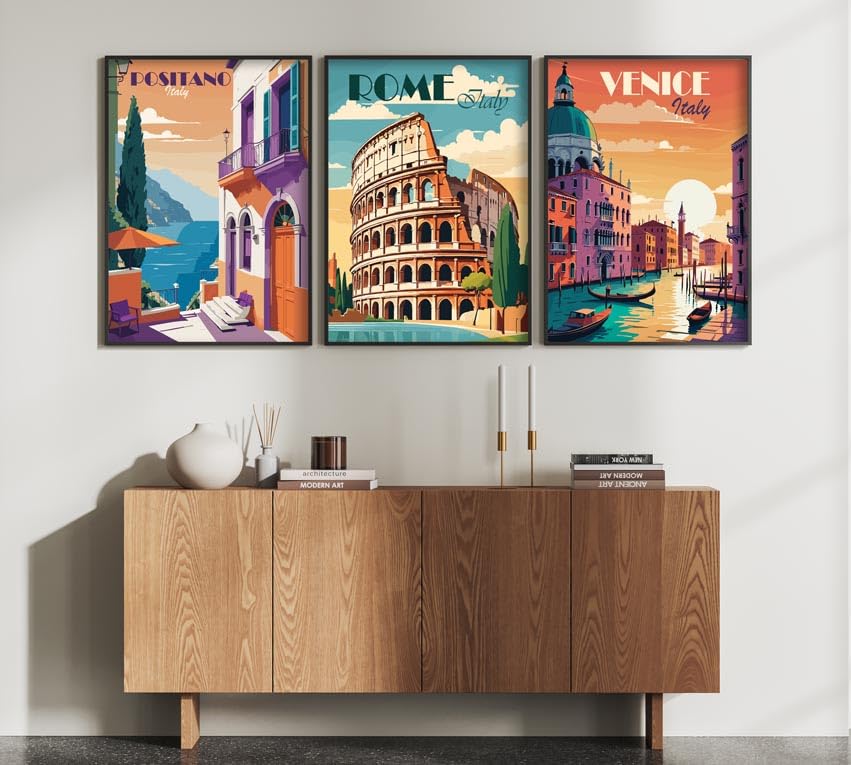 Stilvolle Vintage-Reiseposter im Dreierpack - italienische Sehnsuchtsmomente für Ihre Wände.